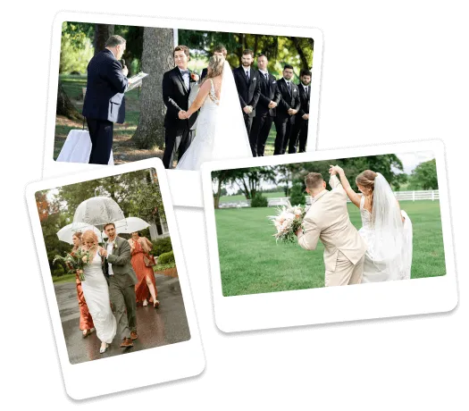 Our team is there to keep you focused on enjoying the day. We’ll blend in with your guests, keep things on track, and capture all the special moments without stressing you out. Think of us as your wedding-day BFFs with cameras! You’ll get all the shots you want, and we’ll make sure you’re having a blast!